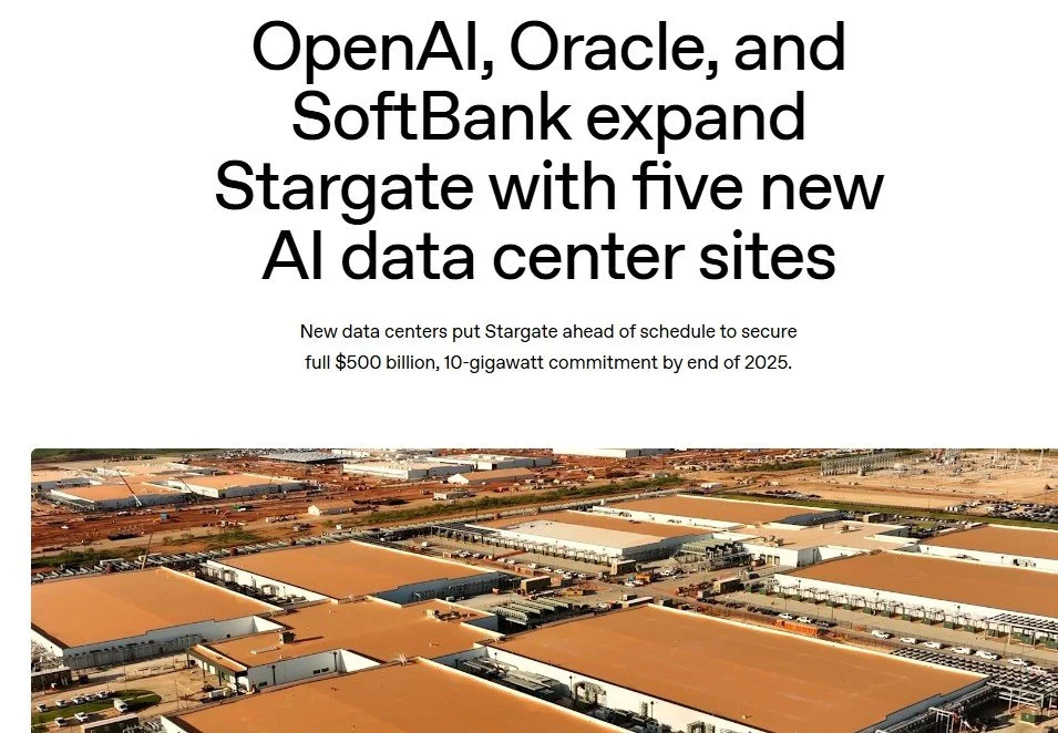 The scope is shown by the funding commitments of the major US tech companies with investments in the billions of dollars. Pictures show some of the data center commitments for 2025 such as the massive $500 Billion commitment by the Stargate joint venture.